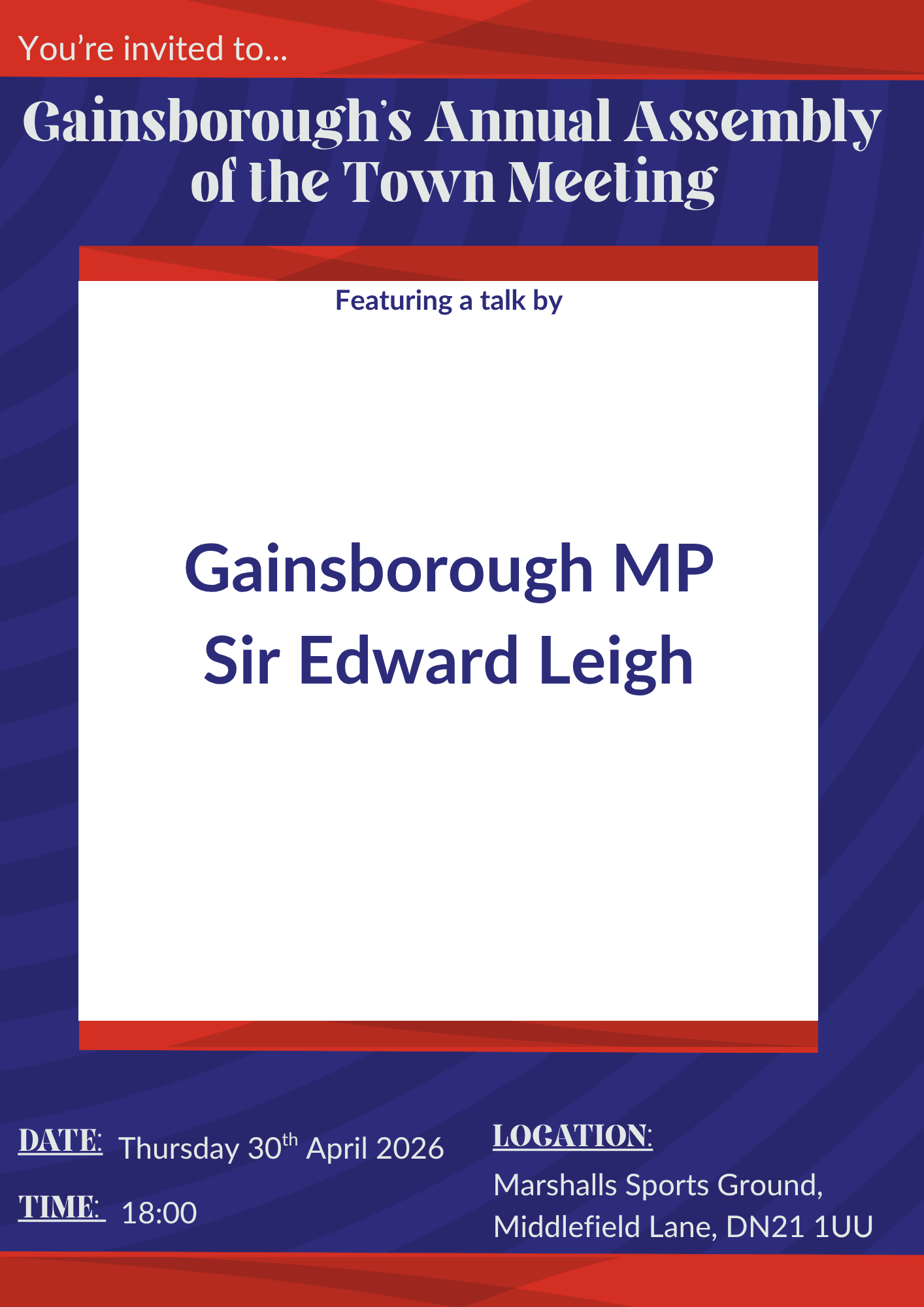 Gainsborough MP Sir Edward Leigh will be speaking, sharing updates on Levelling Up funding and the Pride of Place initiative.