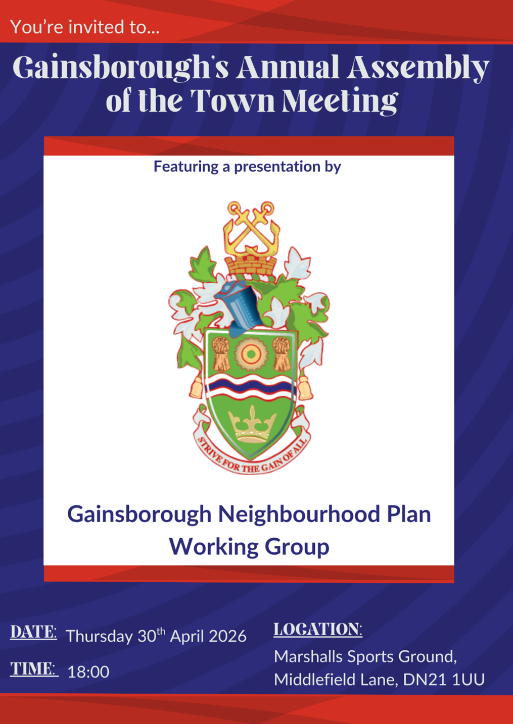 The Gainsborough Neighbourhood Plan Working Group will be sharing updates on the review of the town’s Neighbourhood Plan at this year’s Annual Town Meeting.