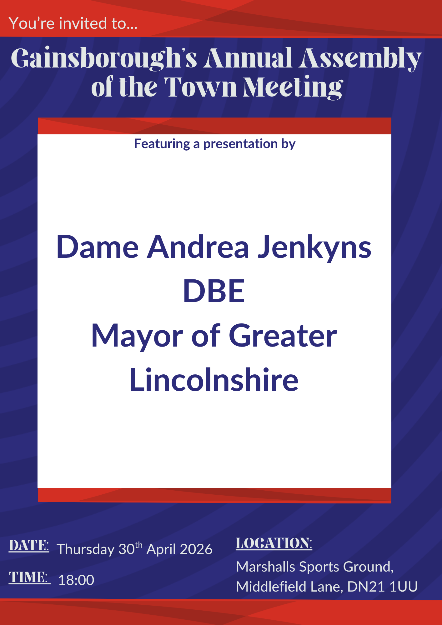Mayor of Greater Lincolnshire Dame Andrea Jenkyns DBE is attending the Annual Assembly of the Town Meeting, where she will outline how the Greater Lincolnshire Combined County Authority is focusing on the outcomes residents say matter most. This includes creating more and better paid jobs, helping people gain the skills and qualifications local businesses need, and supporting the delivery of new homes.